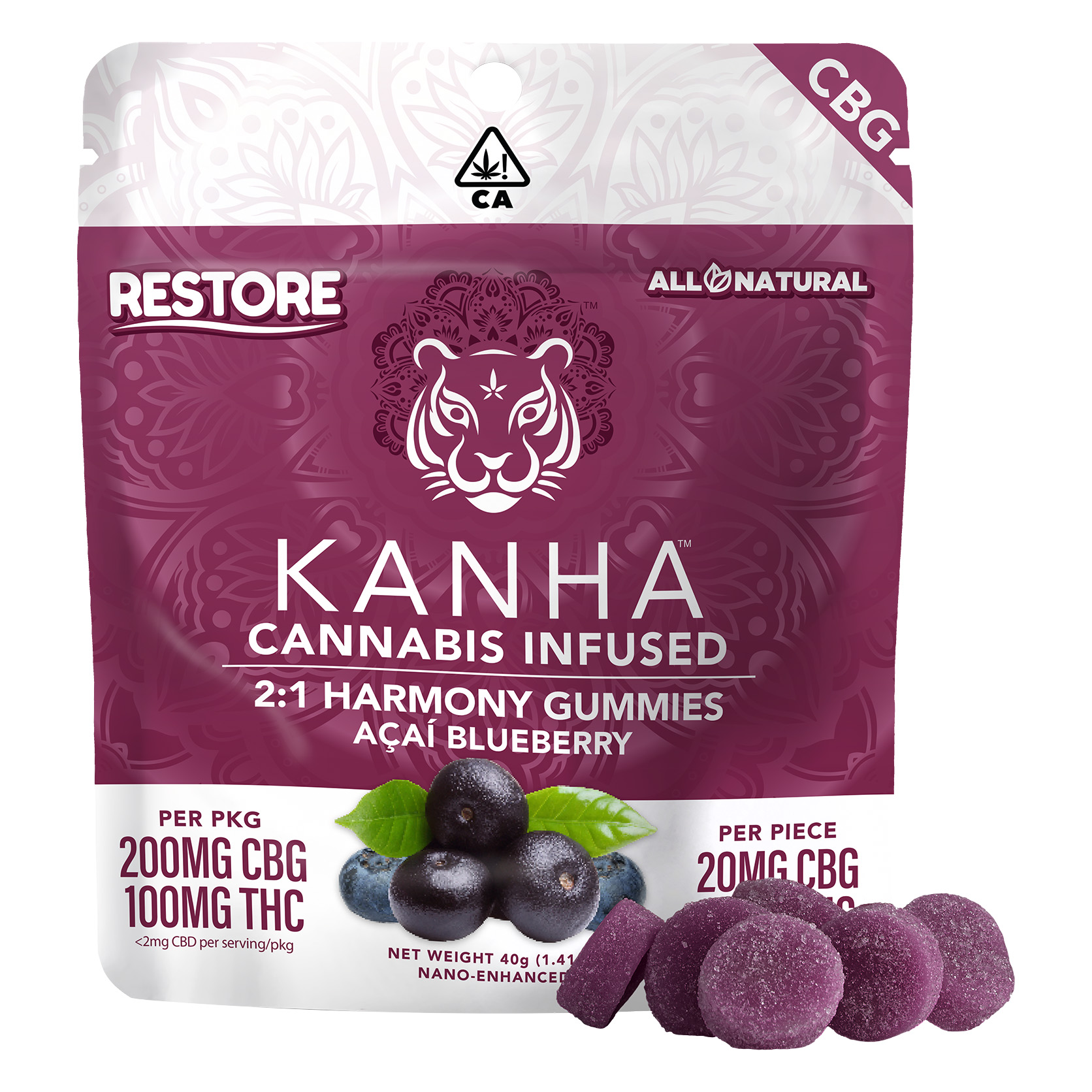 "Nano-enhanced for increased absorption and a faster onset, our 200mg of CBG works to restore mental and physical health. Key benefits include treating gut health, chronic pain, stress, anxiety, and depression." |
